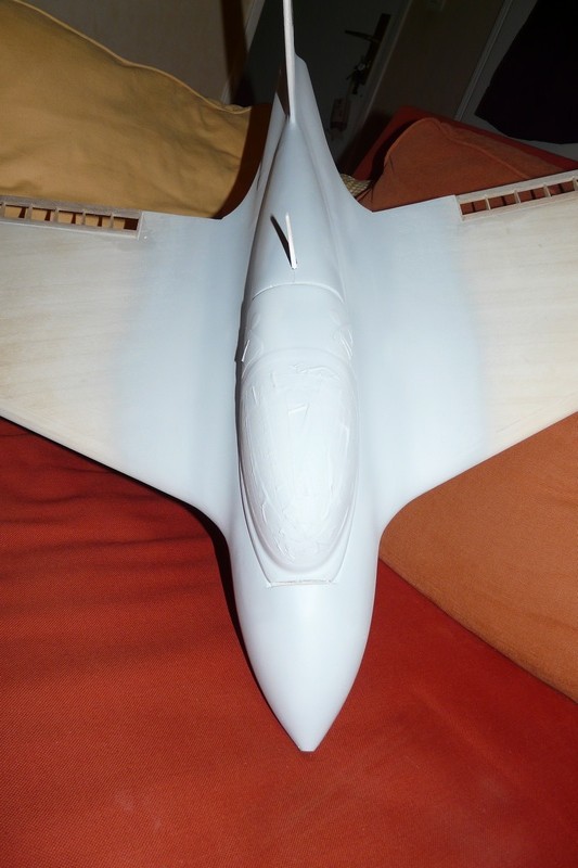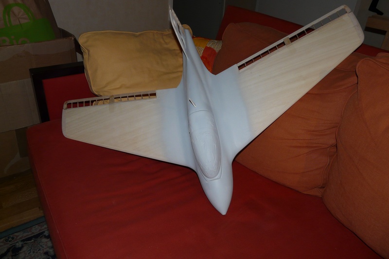 Now the wing fairing is done, elevons have been cutted off and re-built in balsa structure. Primer has been sprayed, I wish I'll be able to paint it this week. New pictures upcoming soon!